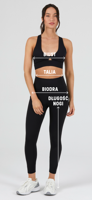 Porównaj swoje wymiary biustu, talii, bioder oraz długości nogi z tabelą rozmiarów, aby wybrać odpowiedni rozmiar.